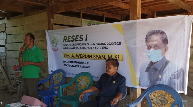 Spionasenews.com-soppeng Pada masa persidangan 1 tahun 2020/2021 anggota DPRD atas Nama Drs. H. A. Werdin, S. Hut, M.Si Ketua Komisi 2 DPRD Kab. Soppeng dari Dapil Kec. Lilirilau) melakukan reses sebanyak 5 titik salah satunya di Kelurahan Ujung Kec. L.Rilau pada tanggal 26 Nopember 2020.