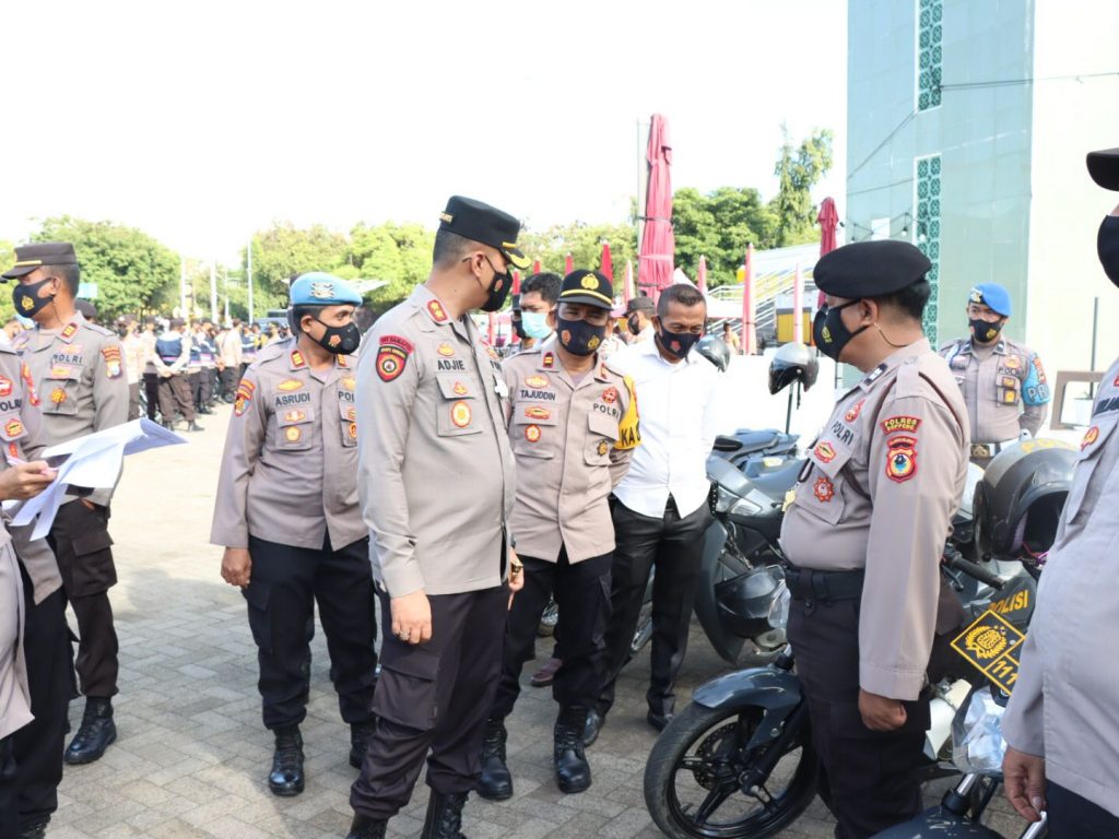 Satu persatu kendaraan dinas personil baik roda 2 maupun roda 4 diperiksa dari kelengkapan surat dan kebersihannya