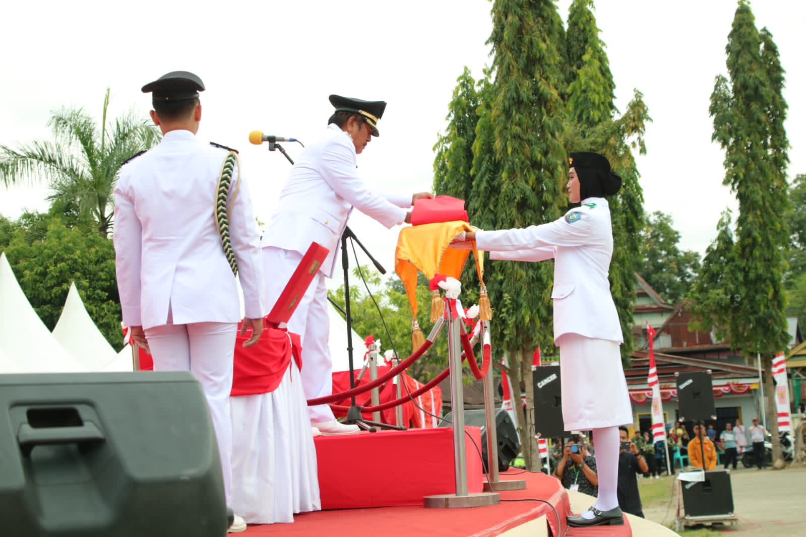 Soppeng–Spionasenews.com. Pada upacara tersebut, sebanyak 71 orang Pasukan Pengibar Bendera Pusaka (Paskibraka) yang merupakan siswa/siswi pilihan se-Kabupaten Soppeng melakukan penurunan duplikat Sang saka Merah Putih dengan lancar dan khidmat.