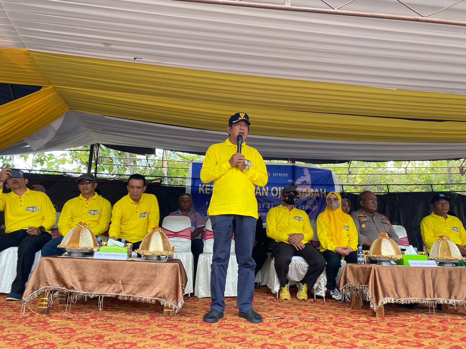 Sambutan Bupati Soppeng sekaligus membuka perlombaan Ketangkasan Ojek Gabah H.A.Kaswadi Razak SE :