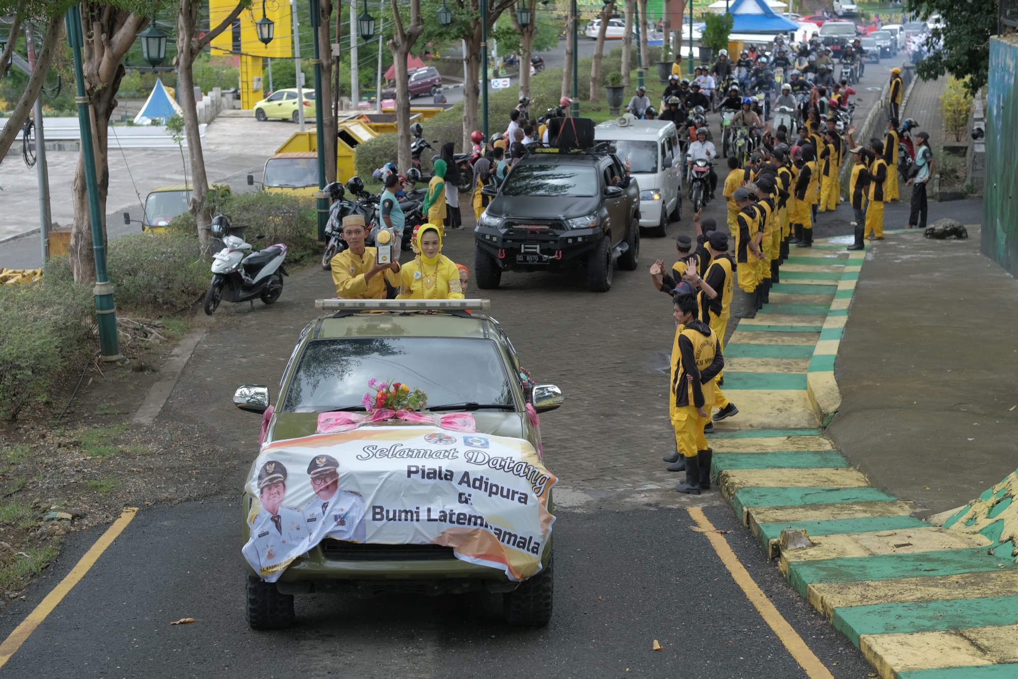 Pemerintah Kab. Soppeng melakukan penjemputan di perbatasan Barru-Soppeng kemudian melakukan arak-arakan Piala Adipura Tahun 2023 di beberapa Kecamatan, bertempat di Depan Permandian Lereng Hijau Buludua, Kec. Marioriwawo. Rabu, 06 Maret 2024.