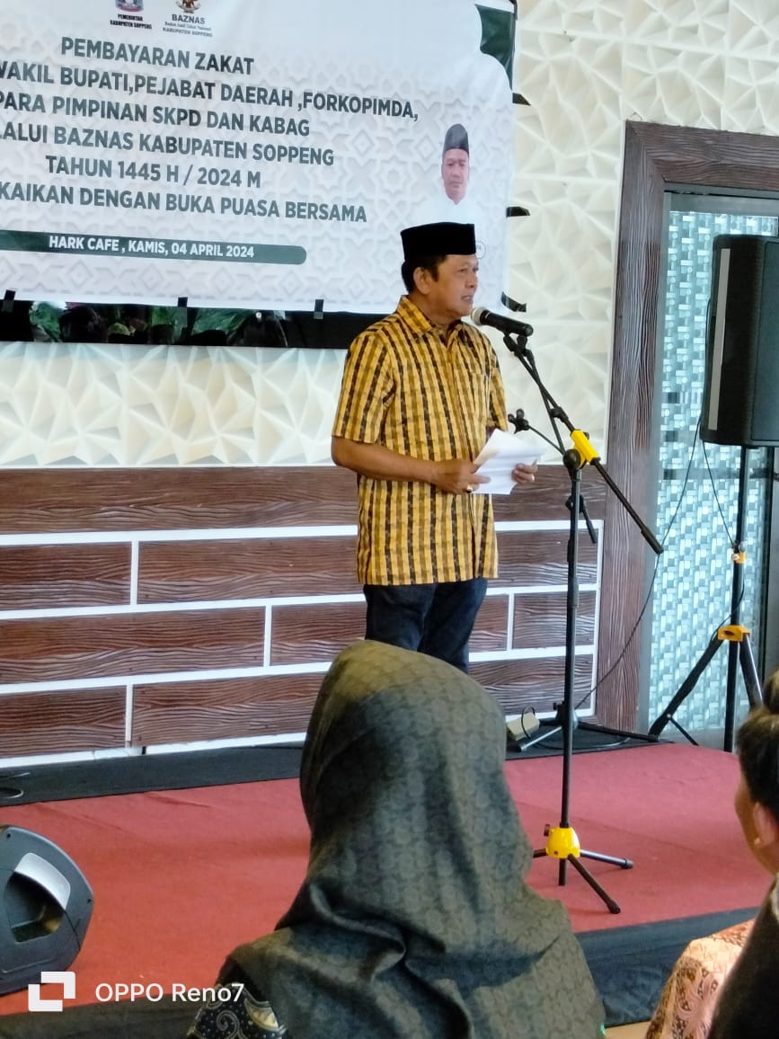 Soppeng–Spionasenews.com. Pemerintah Daerah Kabupaten Soppeng bersama jajarannya laksanakan pembayaran zakat melalui Badan Amil Zakat Nasional (Baznas) kabupaten Soppeng digelar di Hark Cafe Kamis 04 April 2024.