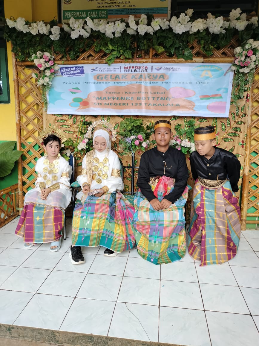 Kepala Sekolah SDN 133 Takalala menyampaikan bahwa Dalam babak kearifan lokal, peserta didik diajak untuk memahami dan menghargai nilai-nilai budaya dan kearifan lokal dengan sub tema “Mappenre Botting” mulai dari mengantar calon mempelai laki laki dengan diringi mulai dari pangolo sompa ,pembawa erang erang ,pembawa bosara dan tdak ketinggalan wola soji tempat menyiman buah buahan rombongantiba di tempat mempelai wanita disambut tari padduppa kemudian mattimpa kamara ,