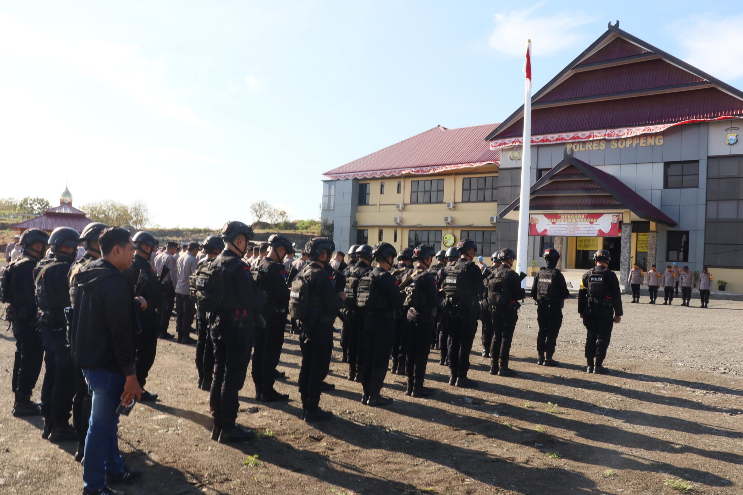 Soppeng–Spionasenews.com. Dalam rangka memperkuat pengamanan selama pelaksanaan Pemilihan Kepala Daerah (Pilkada) 2024, Polres Soppeng menerima penugasan 32 personel BKO Yon C Pelopor/ Brimob Bone ini merupakan bagian dari Operasi Mantap Praja 2024 Polres Soppeng yang bertujuan untuk memastikan keamanan dan kelancaran proses Pilkada serentak tahun 2024 di Kabupaten Soppeng.