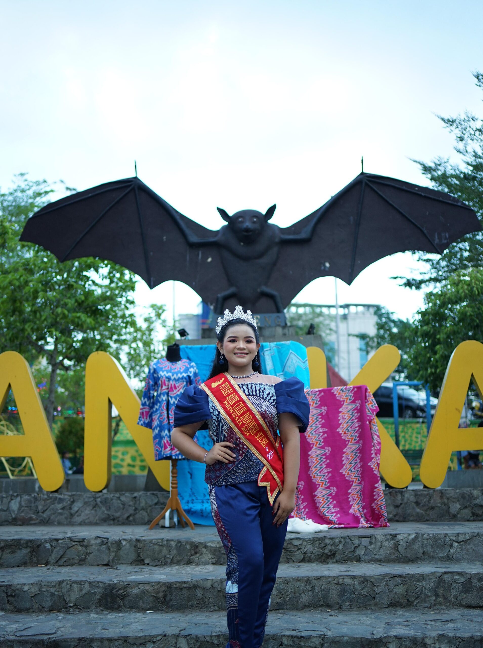 𝘗𝘶𝘵𝘳𝘪 𝘈𝘲𝘪𝘭𝘢𝘩 𝘢𝘬𝘢𝘯 𝘮𝘦𝘯𝘨𝘦𝘯𝘢𝘯𝘨𝘬𝘢𝘯 Batik Kalong ciri khas Soppeng y𝘢𝘯g akan dipresentasikan dan dikenalkan didepan Juri dan peserta .