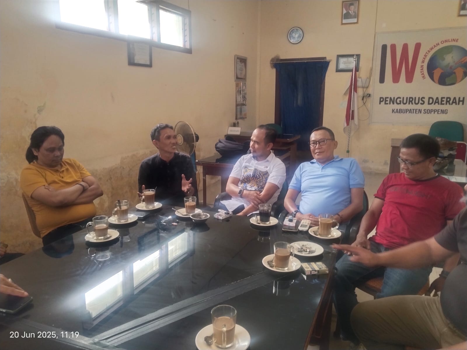 Pertemuan yang berlangsung di sebuah ruang pertemuan pada Jumat, 20 Juni 2025 ini dihadiri perwakilan dari lima organisasi wartawan, yaitu Aliansi Jurnalis Online Indoneaia (AJOI), Serikat Media Siber Indonesia (SMSI), Jaringan Jurnalis Indonesia (JOIN), Ikatan Jurnalis Soppeng (IJS), dan Ikatan Wartawan Online (IWO) selaku ruan rumah.