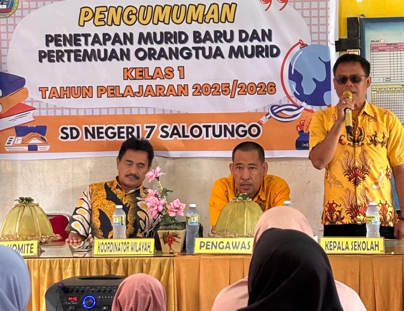 SD Negeri 7 Salotungo, Kecamatan Lalabata, resmi mengumumkan penetapan murid baru Tahun Ajaran 2025/2026 pada Kamis (3/7/2025). Acara yang berlangsung di halaman sekolah ini dihadiri orang tua/wali siswa, panitia, dan tokoh pendidikan.