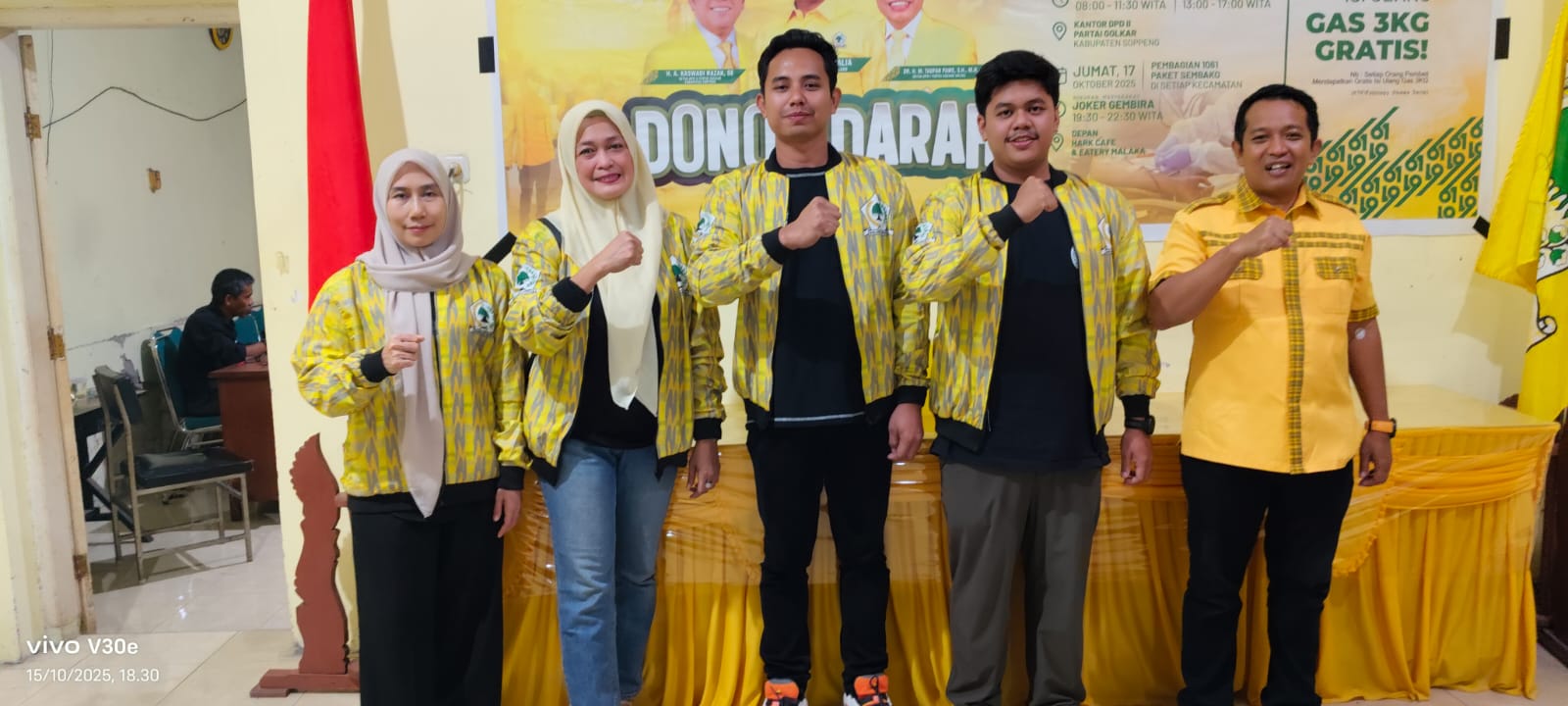 SOPPENG–Spionase news. Com. DPD II Partai Golongan Karya (Golkar) Kabupaten Soppeng menunjukkan komitmennya untuk hadir di tengah masyarakat dengan menggelar aksi donor darah massal dalam rangka memperingati HUT ke-61 Partai Golkar. Kegiatan ini merupakan implementasi dari instruksi DPP untuk melaksanakan kegiatan yang berdampak langsung bagi masyarakat.