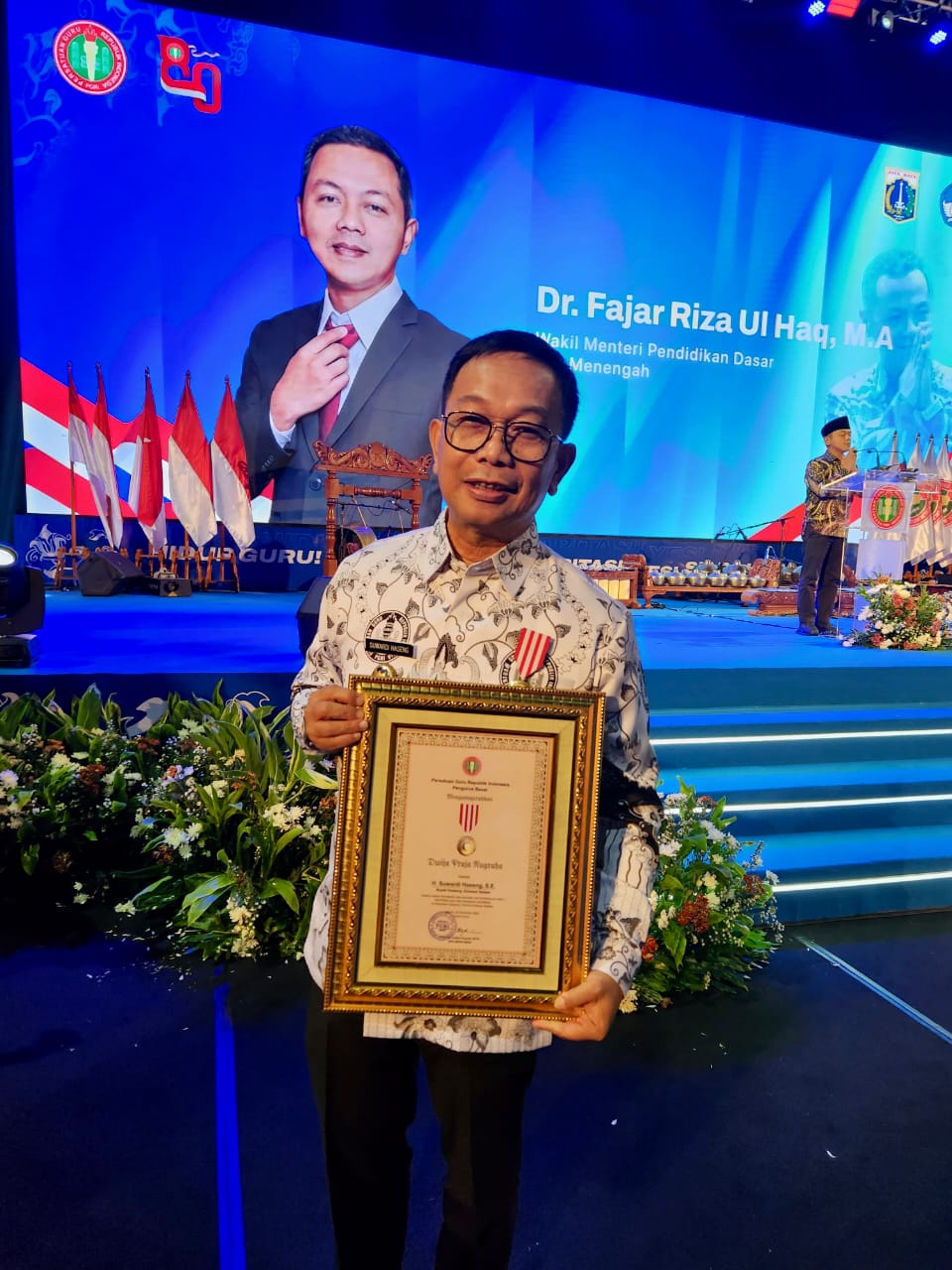 Jakarta Utara–Spionasenews.com. Bupati Soppeng, H. Suwardi Haseng, dianugerahi Penghargaan Dwija Praja Nugraha 2025 oleh Pengurus Besar Persatuan Guru Republik Indonesia (PB PGRI). Penghargaan ini merupakan yang tertinggi bagi kepala daerah yang dinilai memiliki kontribusi signifikan dalam memajukan guru dan dunia pendidikan.