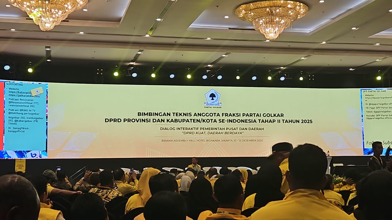 JAKARTA, 11 Desember 2025 – Partai Golongan Karya (Golkar) menggelar Bimbingan Teknis (Bimtek) bagi anggota Fraksi Golkar (FPG) DPRD provinsi dan kabupaten/kota se-Indonesia di Hotel Birawa Assembly Hall, Jakarta, hari Kamis (11/12/25). Kegiatan yang mengusung tema “DPRD Kuat Daerah Berdaya” ditujukan sebagai ajak dialog interaktif sekaligus upaya memperkuat sinergi antar legislator daerah.