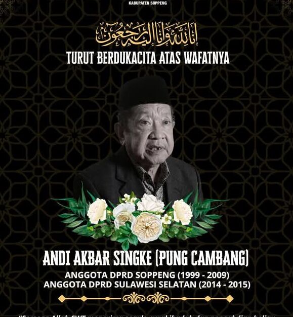 Soppeng – Spionasenews.com Kabar berpulangnya tokoh kharismatik Andi Akbar Singke atau yang akrab disapa Pung Cambang, Senin 27 April 2026 di Rumah Sakit Latemmamala, Kabupaten Soppeng, tidak hanya menyedihkan kalangan pemerintahan dan masyarakat luas, namun juga menyentuh hati para insan pers di daerah ini.